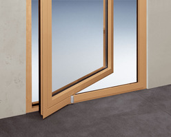 Alışılmadık bir biçimde pencere açılımı: GU dikey pivot donanımları merkez dışındaki dönme noktalarında, yüksek dikey boşluklarda, geniş ve ağır kanatlarda bile kolay ve konforlu bir havalandırma imkanı sağlar.